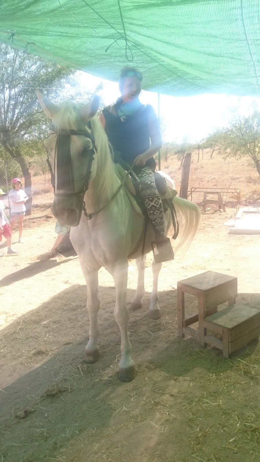 Get up, swim, walk, breakfast, pedalo, swim, lunch, siesta (me), swim (Lady R), walk, horse riding, swim, bed.